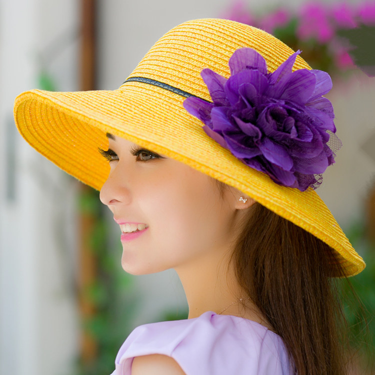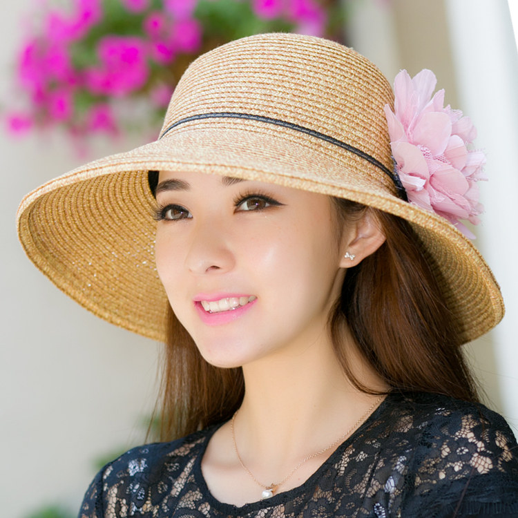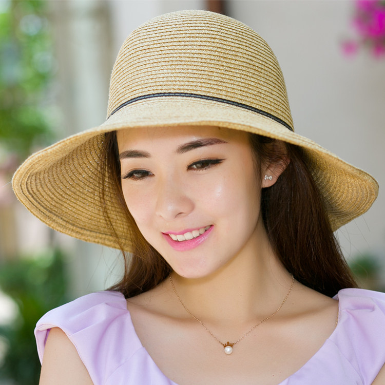 Fisherman hat Han version Lady sunhat Summer outdoor sunscreen sunbeds Large along beach basin cap Lafie straw hat