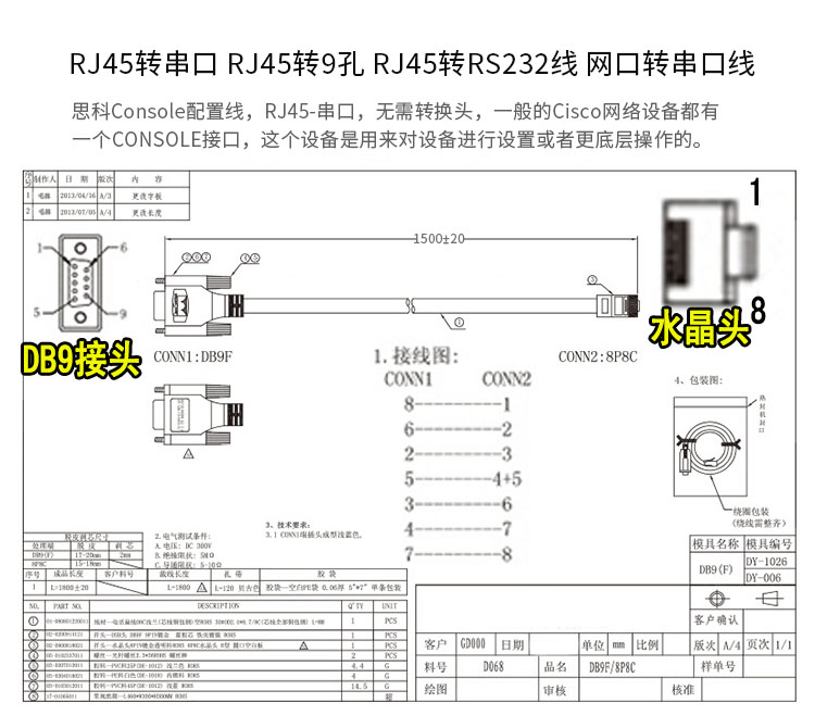 Cisco cisco Huawei console line RJ45 turn RS232 serial network route turn DB9 serial port male joint
