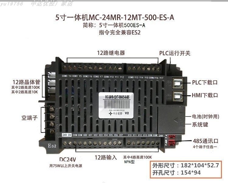 5 inch MC-24MR-12MT-F500-ES-A-485 Zhongda Youkong PLC touch screen all-in-one controller