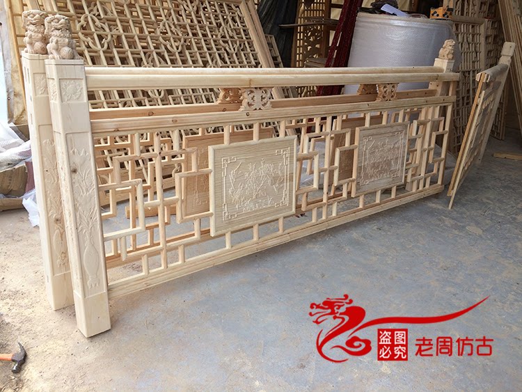 Dongyang wood carving new stair Chinese style decoration archaize solid wood lattice railing guardrail fence carved stair handrail
