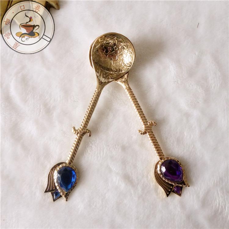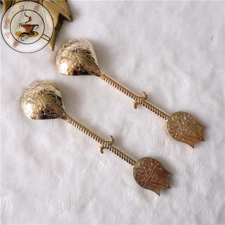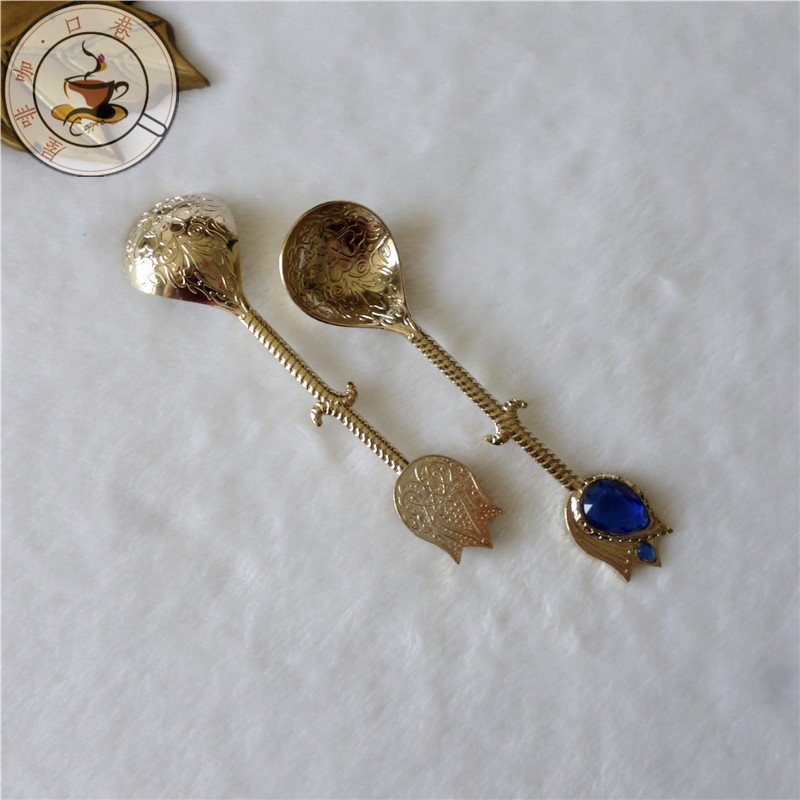 Foreign trade Export Dubai Original single copper-zinc alloy coffee spoon Colorful Jewel Stone Subsection Retro Golden Sweet Spoon Coffee Spoon