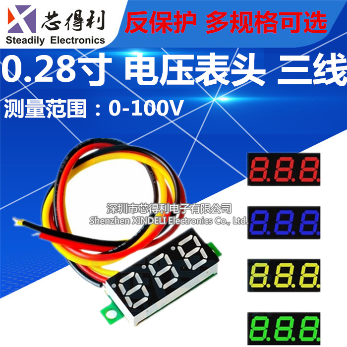 0 28 inch ultra small digital DC voltage meter head digital display adjustable three-wire DC0-100V battery voltmeter
