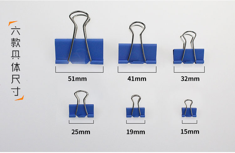 Color long tail clip small, medium and large swallowtail clip 15 19 25 32 41 51mm metal bill iron clip art clip