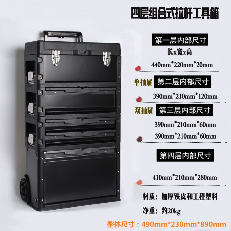 Four-layer combined pull rod toolbox Multi-function hardware toolbox Pull rod toolbox Plastic iron toolbox