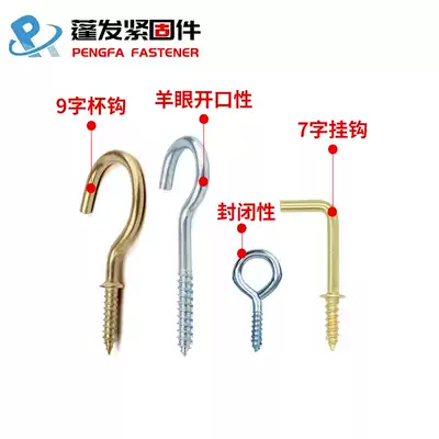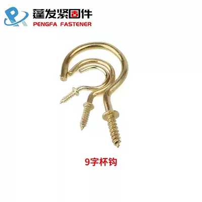 Copper-plated padded 9-word cup hook hanging clothes hook Galvanized sheep's eye lamp hook wooden board with self-tapping wood screws seven 7-word hook