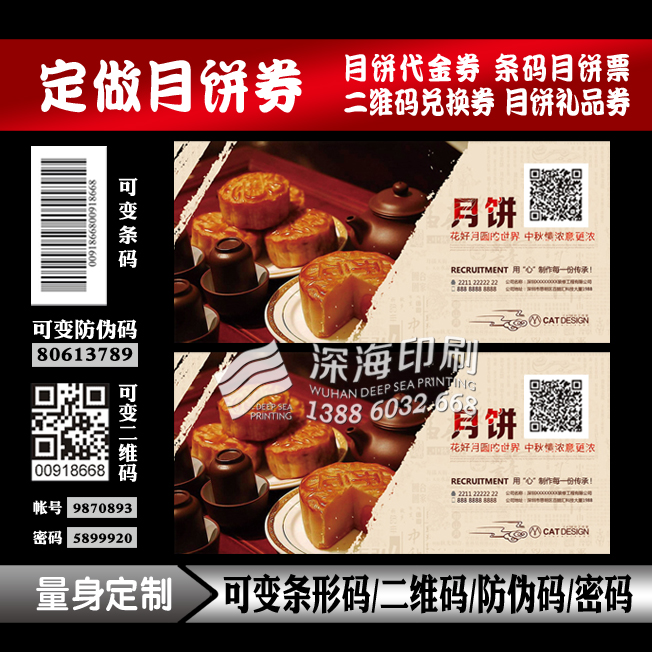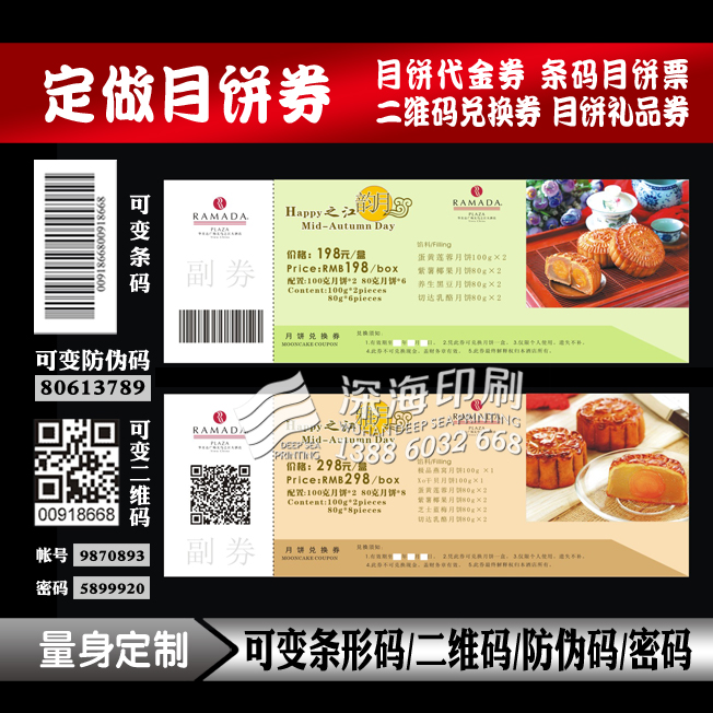 Print Customized Barcode Mooncake Ticket 2-2-dimensional Mooncake Ticket Anti-fake Gold Coupon Counterfeit moon cake Voucher Pick-up Ticket