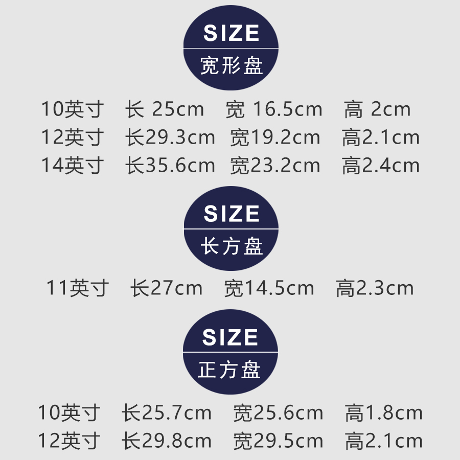 10-inch rectangular wide-shaped care disc length 25cm12 inch rectangular width-shaped tray length 29 3cm14 inch rectangular width-shaped tray length 35 6cm11 inch rectangular narrow shape