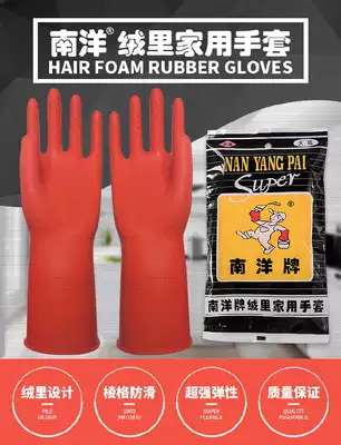Nanyang brand Red household latex gloves waterproof and anti-Masonry washing dishes gloves industrial acid and alkali resistant gloves
