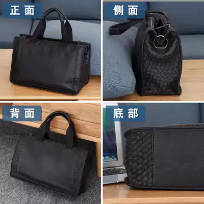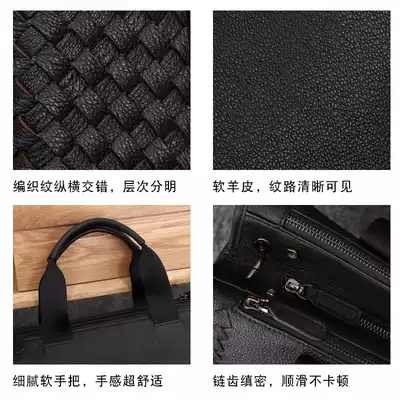 Woven sheepskin men's Hand bag business leather men's bag soft leather casual briefcase bag shoulder tide large capacity