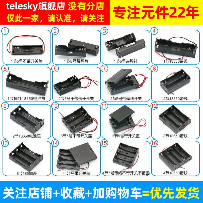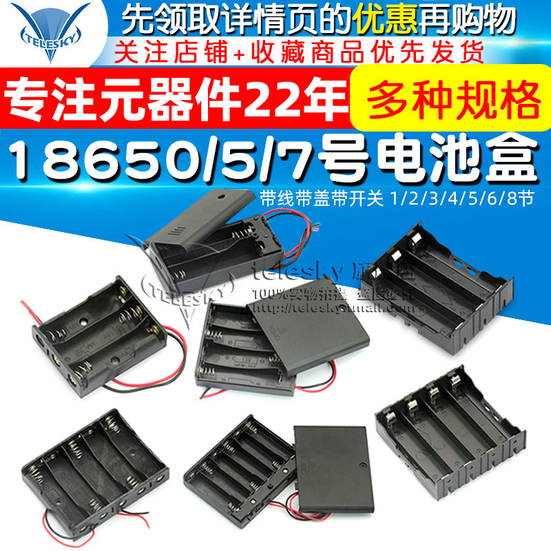 Battery box No. 5, No. 7, 18650 Lithium battery seat with cover, welding-free charging series, 2 sections, 4 sections, 8 sections 9V12V