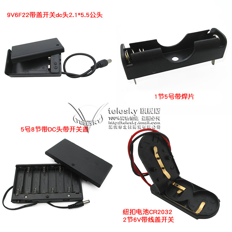 Battery box 9V6F22 with cover switch DC head 2 1*5 5 male head (1)
