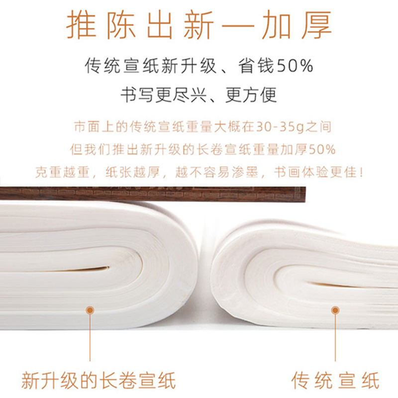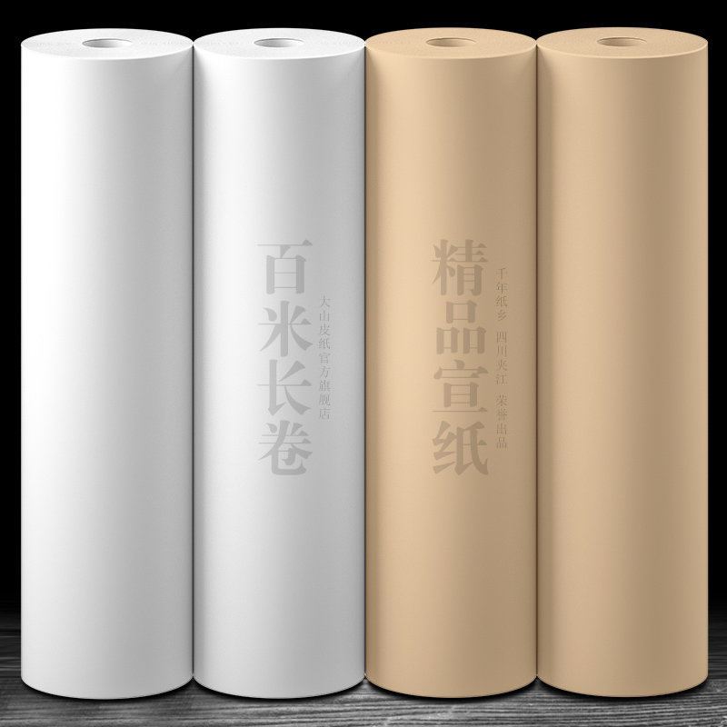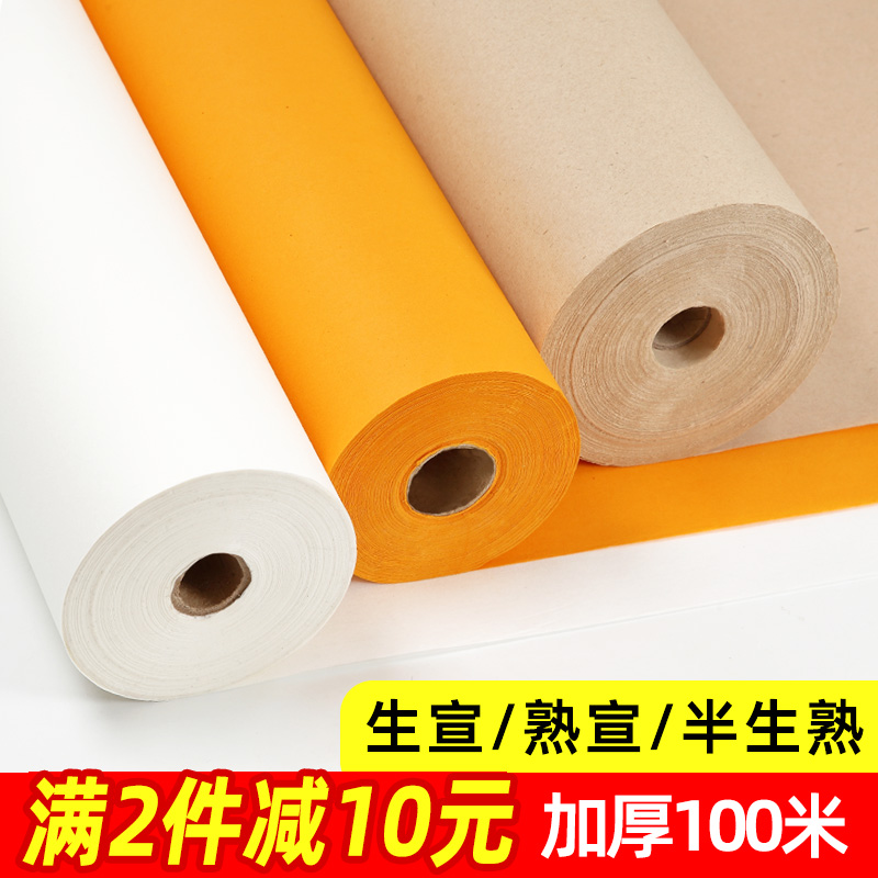 Dashan leather paper long roll Xuan paper roll antique 100 meters half-cooked Chinese painting and calligraphy special works paper thickened raw Xuan paper brush writing practice calligraphy paper 100 meters roll paper reel rough edge paper