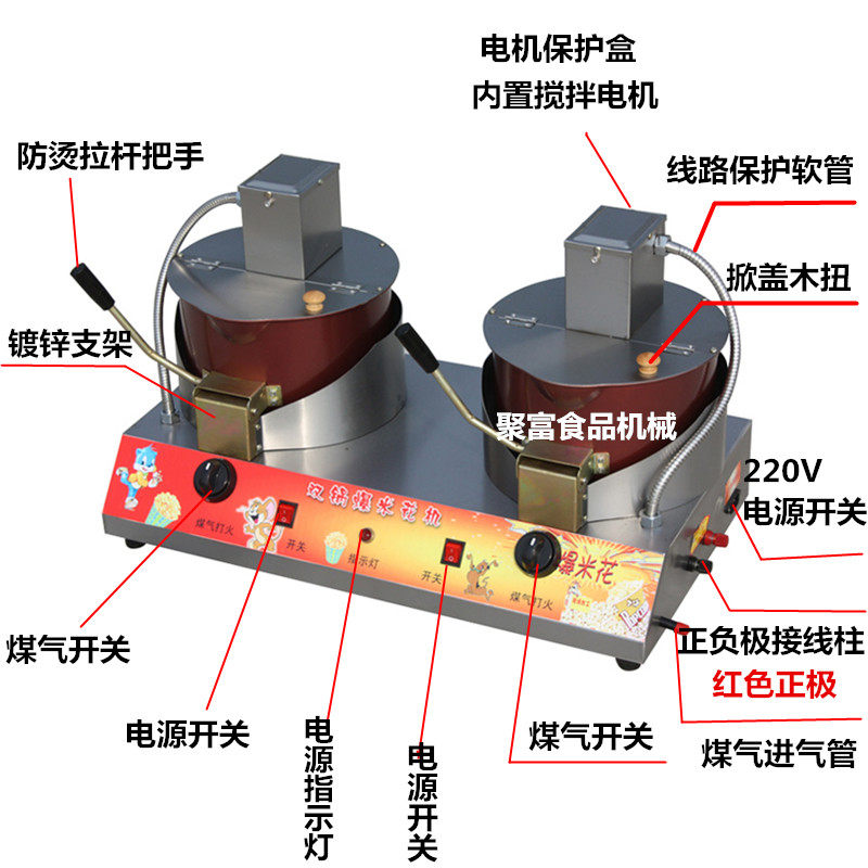Manufacturer direct selling double boiler to stir stainless steel commercial popcorn machine AC/DC dual-use spherical popcorn machine
