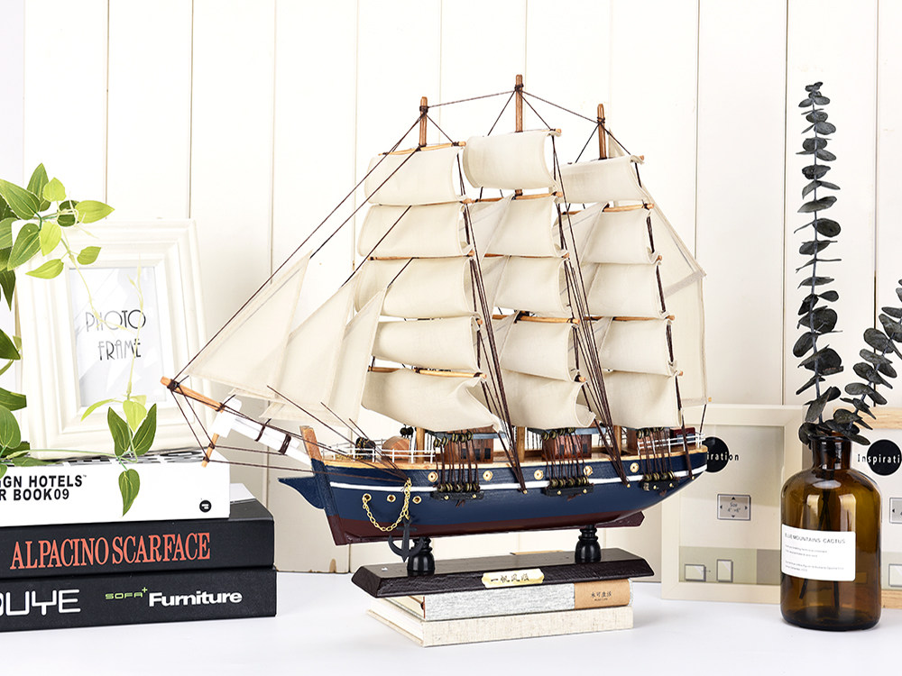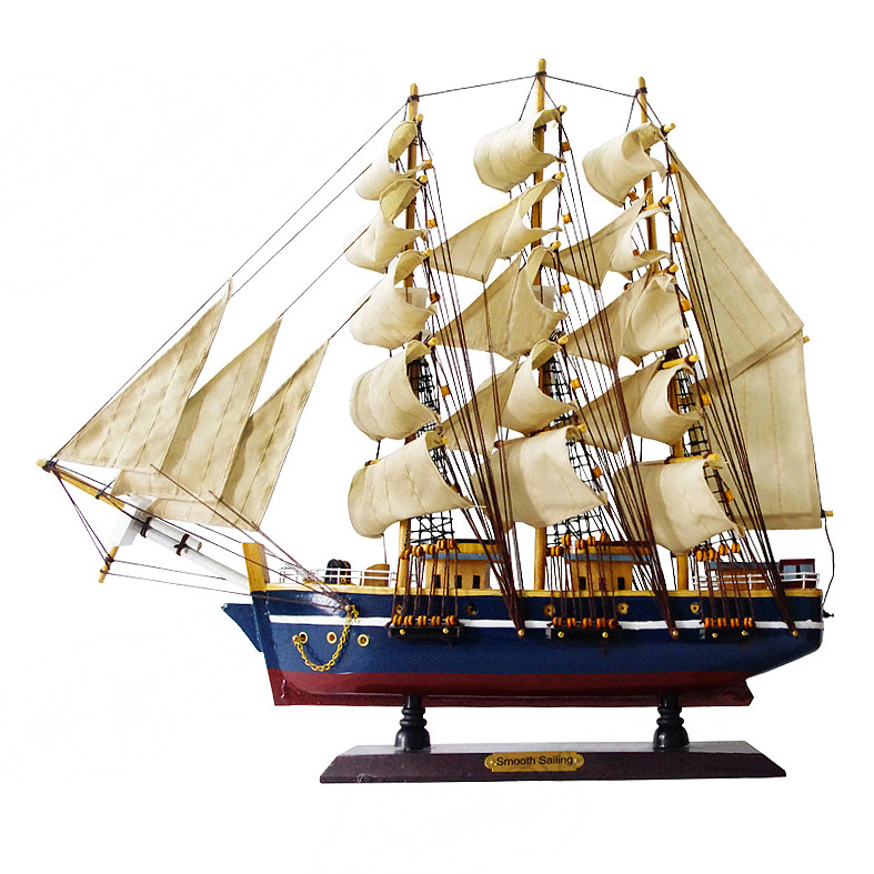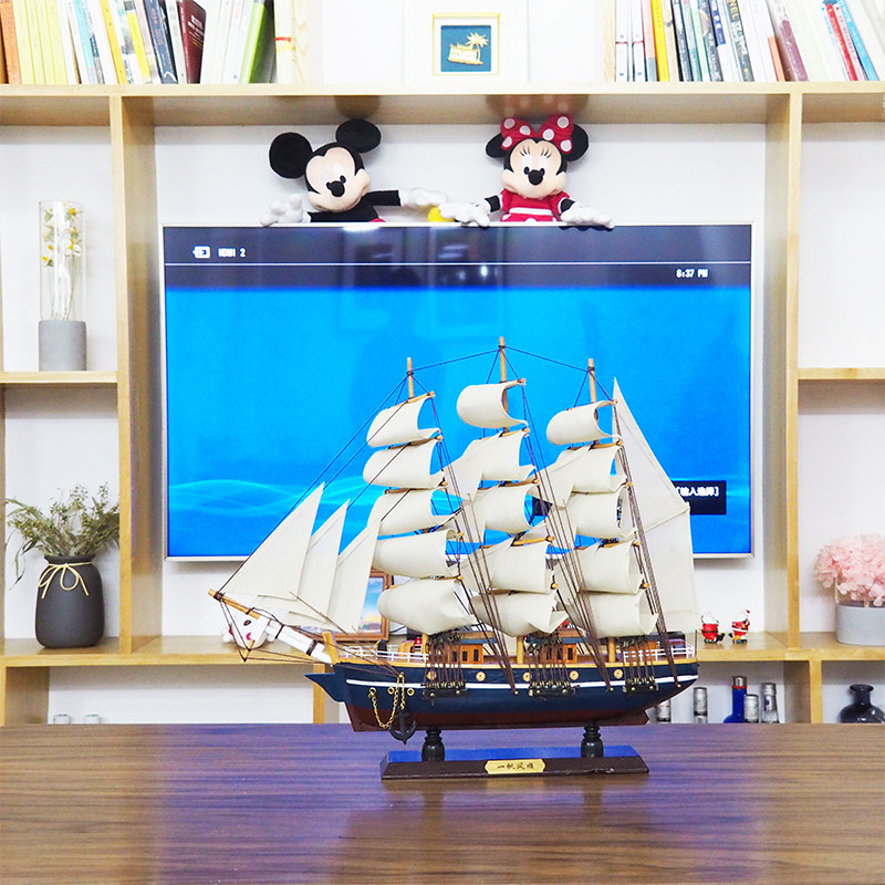 Smooth sailing sailing model ornaments solid wood pure handmade simulation craft boat home wine cabinet entrance decoration