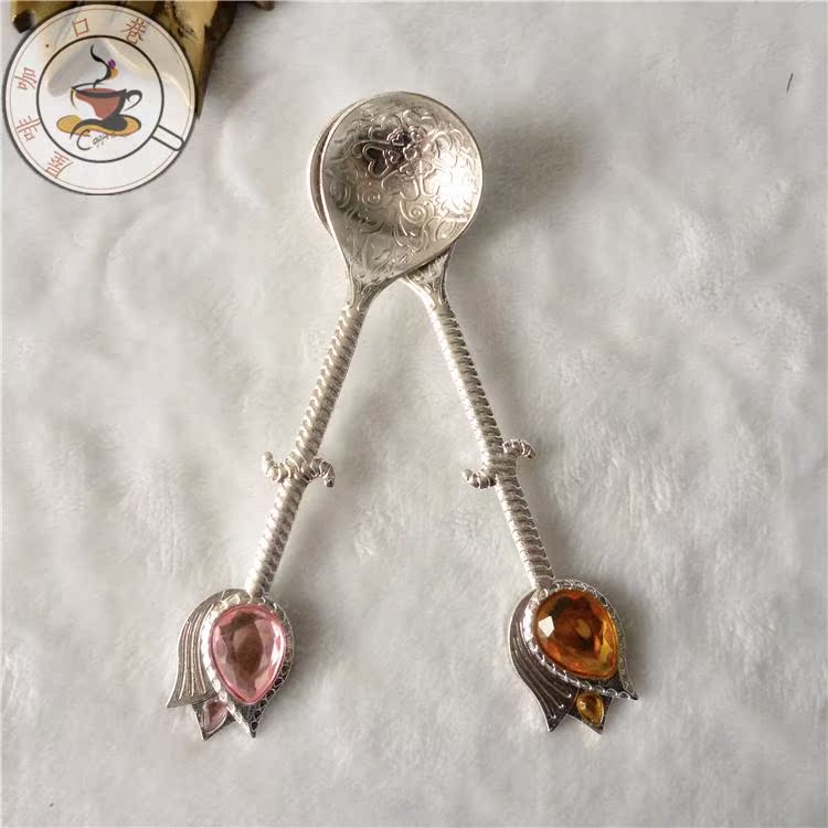 Foreign trade Dubai silver plated coffee spoon Mediterranean tea spoon zinc alloy spoon European style retro inlaid jewel sweet spoons