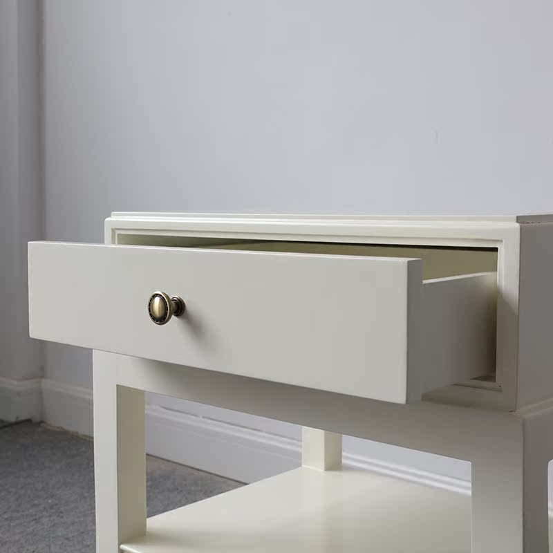 Minima Modern American Ivory White Bed Head Cabinet Designer Prototype Room Bedroom Furniture Bedside Cabinet Customised Whole