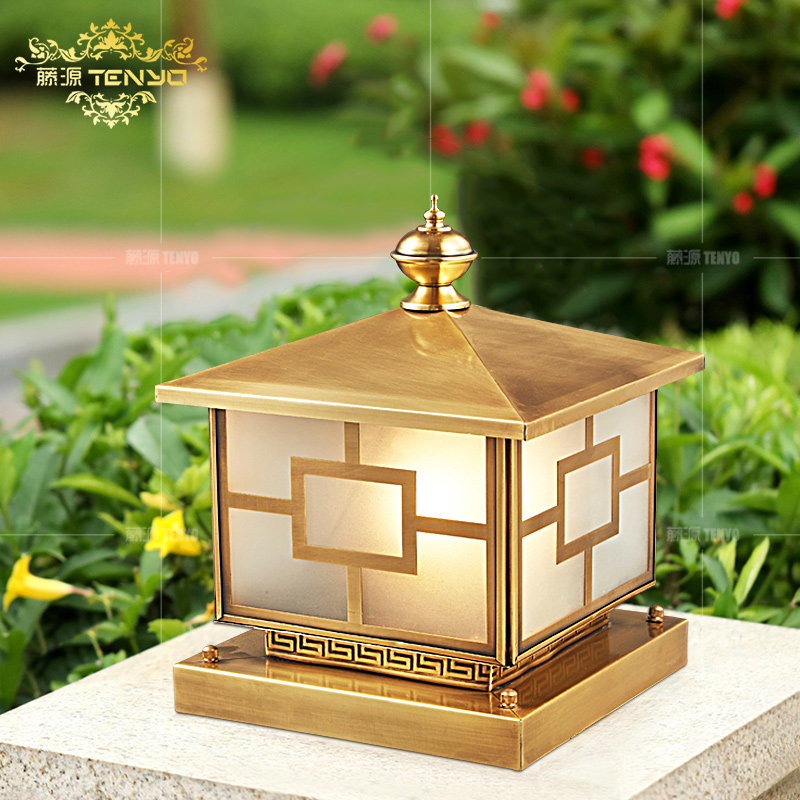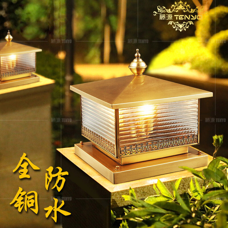All-copper column head lamp wall lamp garden lamp solar gate lamp garden villa outdoor waterproof pillar door post lamp