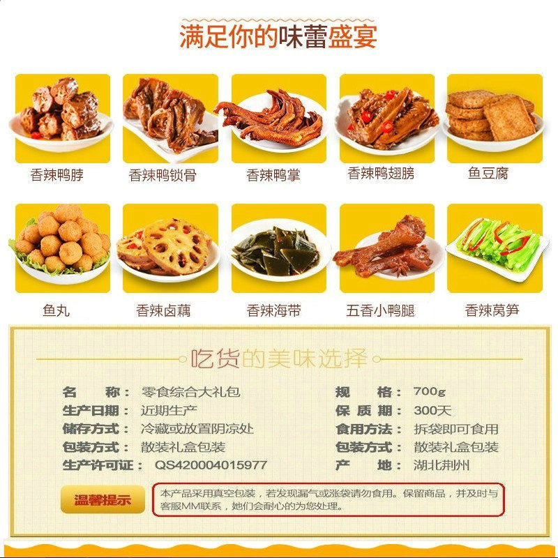 Hubei Teryield Jingzhou Xiaohu Duck 700 gr fragrant spicy grain gift box meat vegetarian multi-taste match