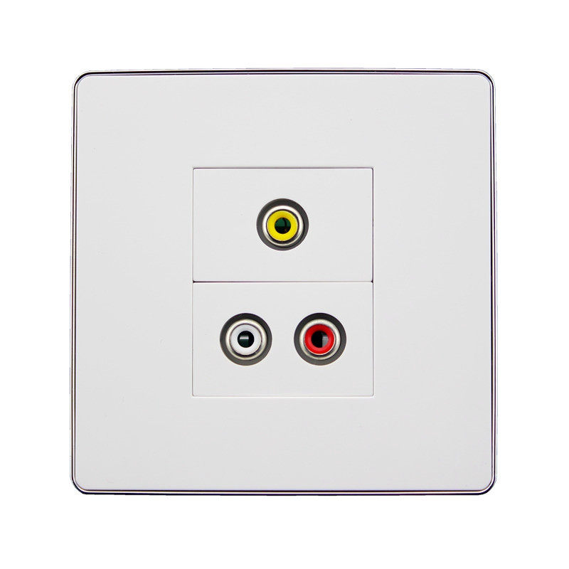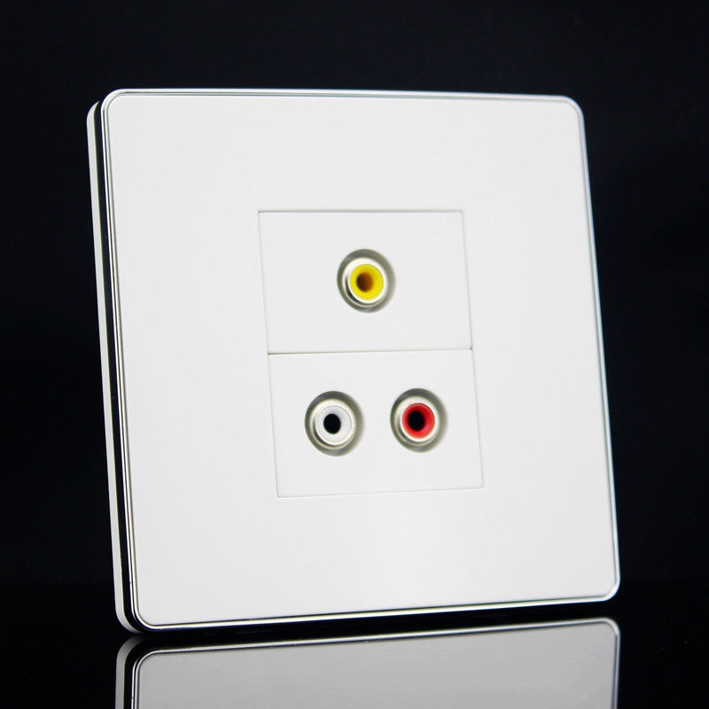 Silver edge 86 type audio-video wall panel switch-free red white audio lotus head AV film module socket