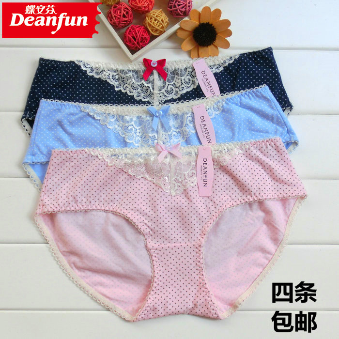 Four Butterfly Anfen Briefs Lady Elastic All-cotton Cute Wave Spot Waist Small Corner Breathable Shorts Day Ensemble