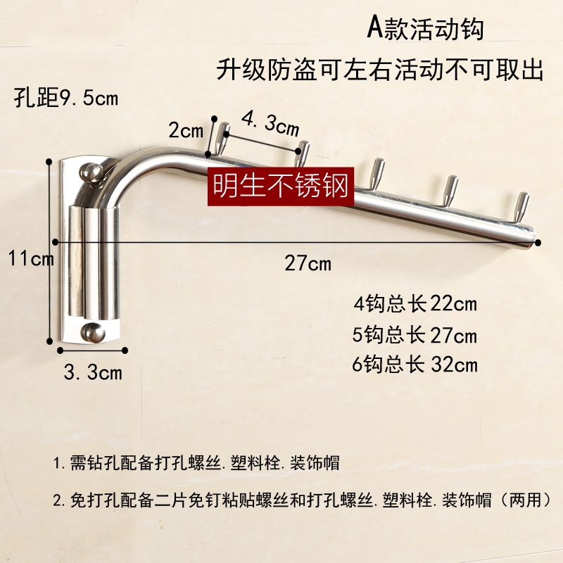 Stainless steel movable clothes hook 5 hook B (need to punch) Stainless steel movable clothes hook 4 hook A (need to punch) Stainless steel movable clothes hook 5 hook A (need to punch)Stainless steel movable clothes hook 6 hook A(need to punch) Stainless steel movable clothes hook 6 hook A (need to punch) Stainless steel movable clothes hook 6 hook A (need to punch) Stainless steel movable clothes hook 6 hook A (need to punch) Stainless steel movable clothes hook