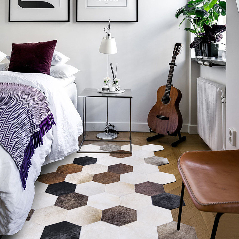 61 Cow Leather Carpet Pentagonal Carpet Designer Carpet Horse Wool Carpet Grey Personality Carpet Creative Customization