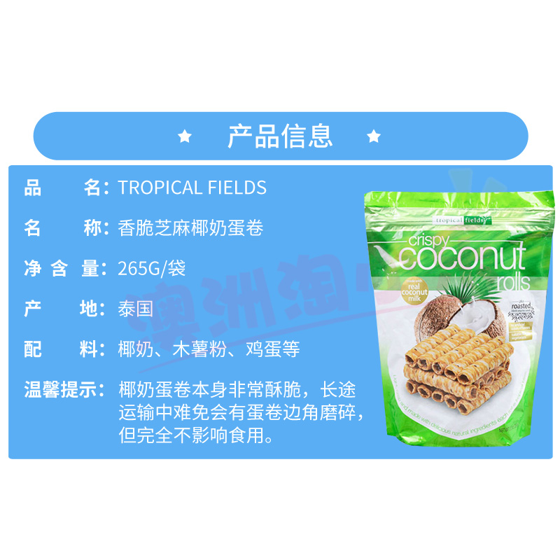 Australian Tropical DJA Crisp Sesame Coconut Milk Roll Coconut Egg Rolls Net Red Snacks Durian Sea Tundra