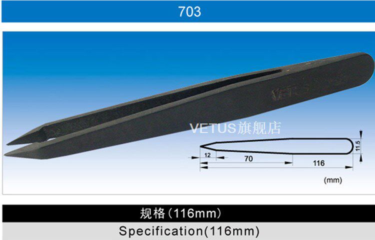 VETUS carbon fiber tweezers 702 703 flat head pointed acid and alkali resistant plastic guide anti-static dust-free purification