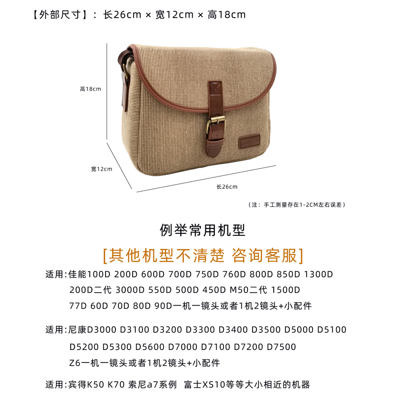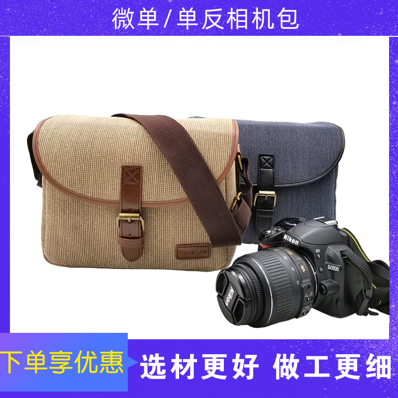 Retro Waterproof Camera Bag Photography Pack Monocular Single Shoulder Bag Applicable Sony Con CanCanon Canvas Micro Single Eye Camera Skew Satchel
