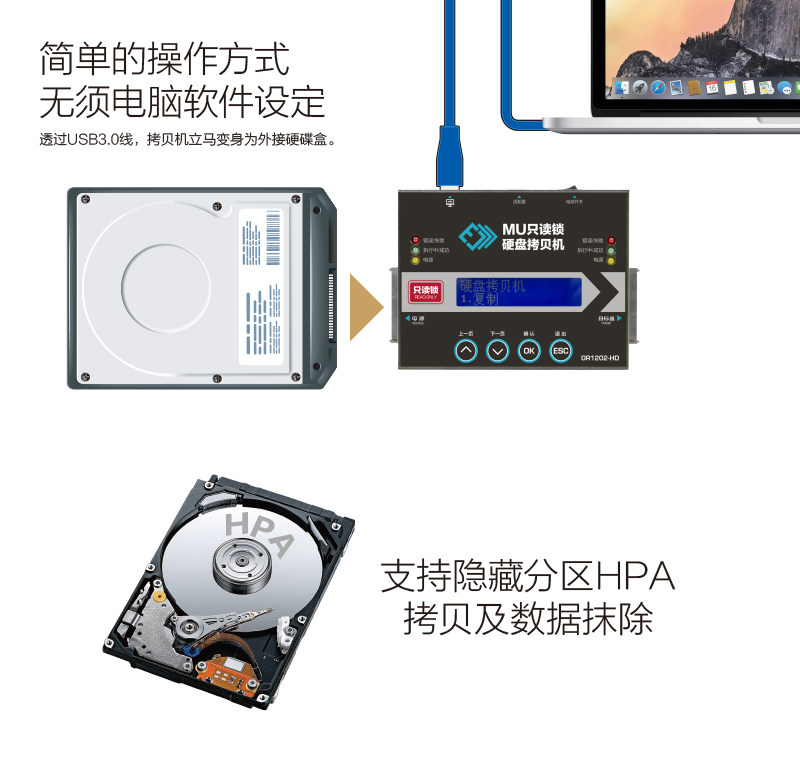 Portable MU read only lock hard disc torture machine anti-delete and write anti-formatting all-round quick copy recomerable machine