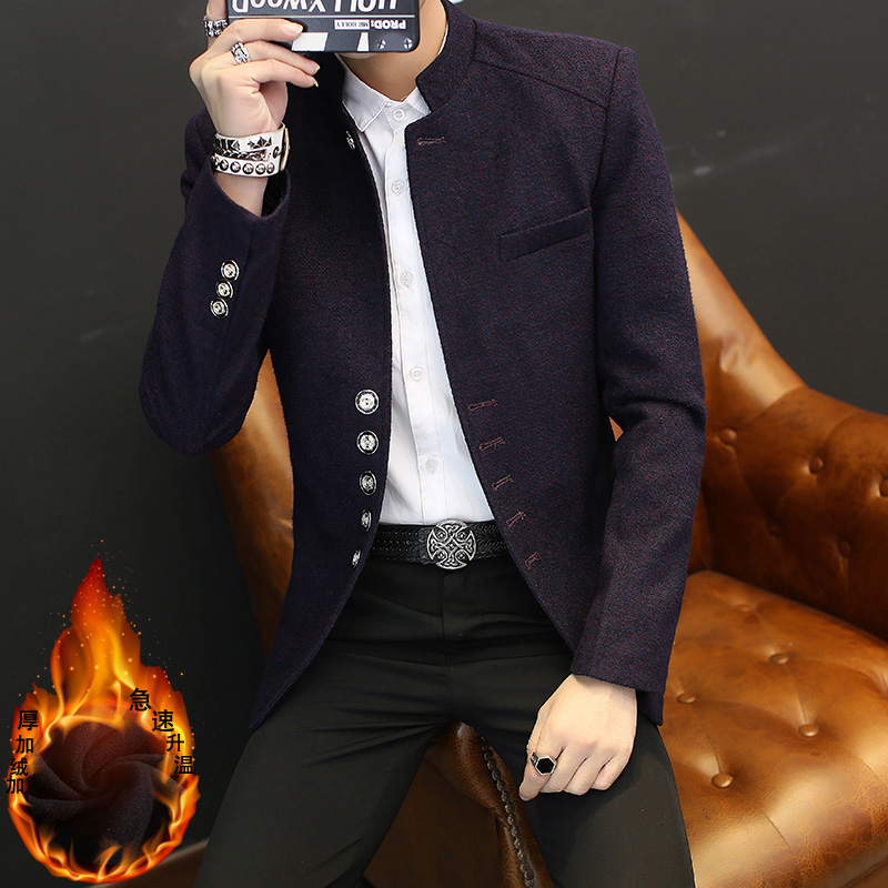 Autumn and winter tunic youth stand-up collar men's business casual suit woolen men's suit jacket top single western