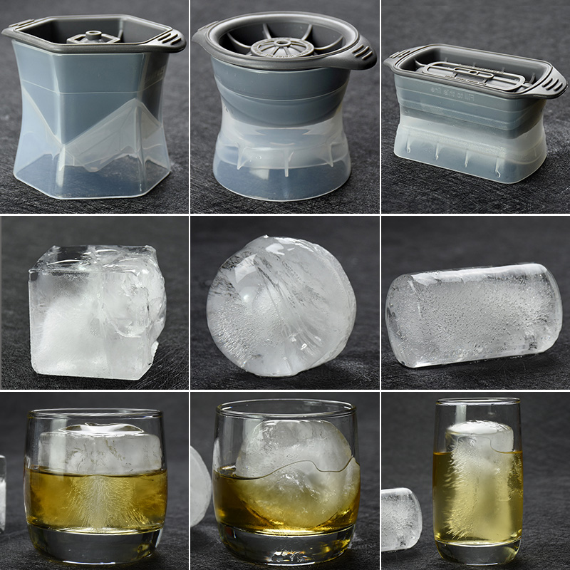Ball-shaped ice tray Cube-shaped ice tray Cylindrical ice tray