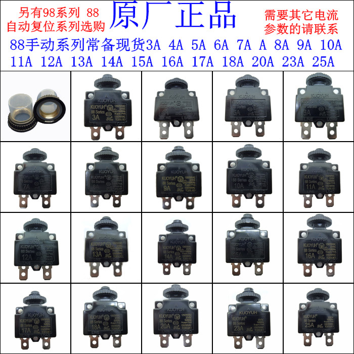 Taiwan KUOYUH Overcurrent Protector Overload Switch 88 Series 7A Motor Water Pump Current Short Circuit