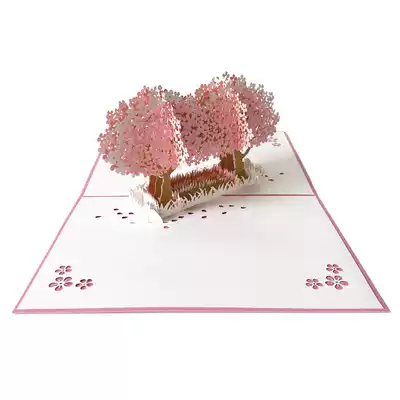 A paper reading show cherry blossom three-dimensional greeting card 3D paper carving creative card Thanksgiving Birthday custom invitation letter Teacher's Day