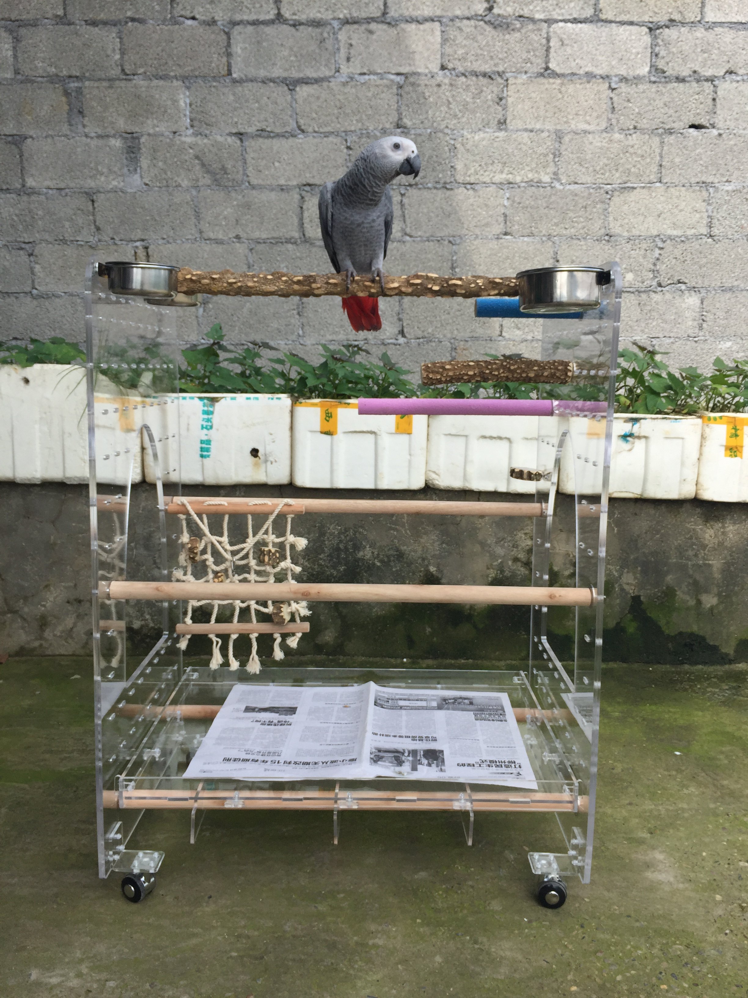 Large Parrot Station Rack Grey Parrot Sunflower Amazon Stainless Steel Station Rack Food Cup Prickly Ash Wood Grinding Paw Rod Amusement Park