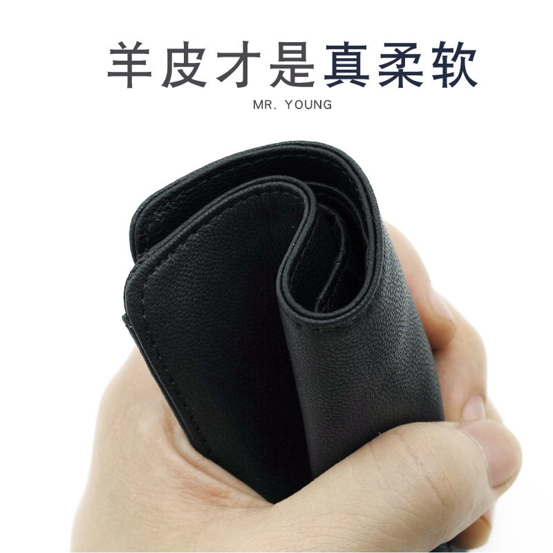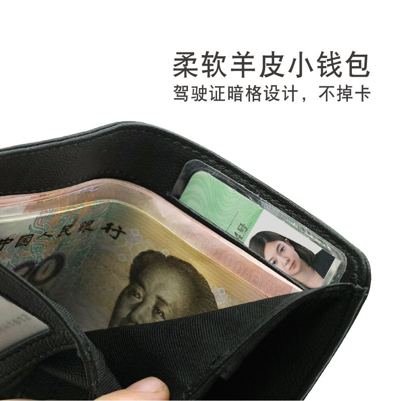 Sheepskin ultra-thin wallet men's short fashion men's thin small wallet genuine leather youth vertical mini wallet soft leather