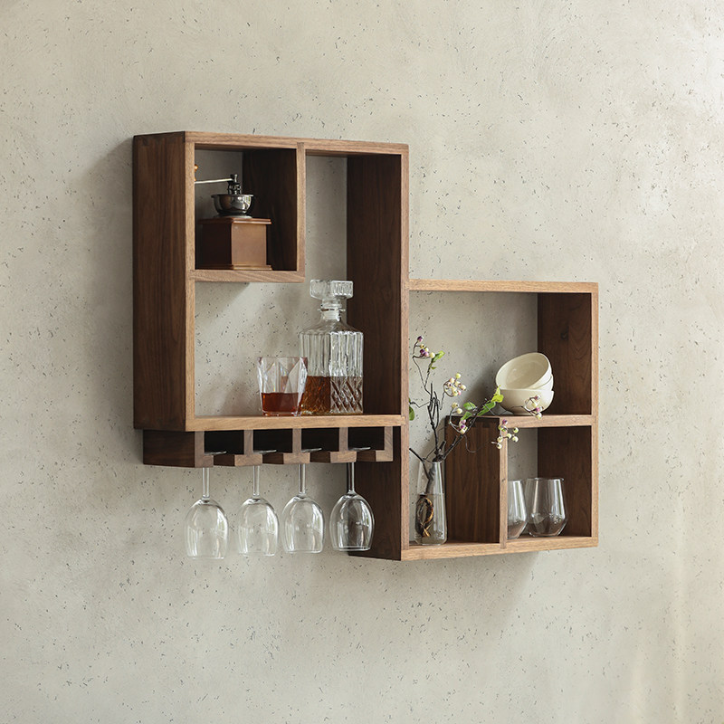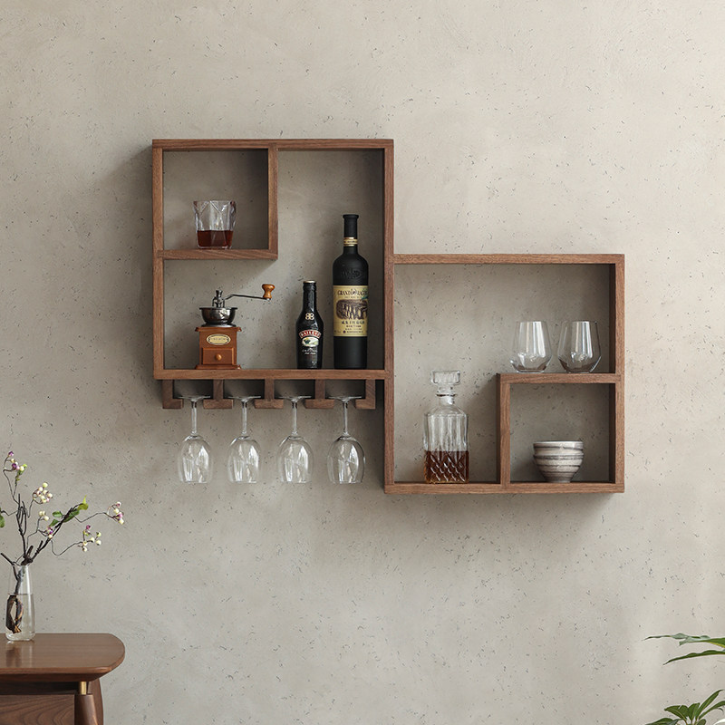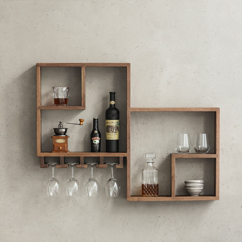 Black Walnut wine cabinet Red wine rack Home Nordic simple wall decoration Dining room wall storage hanging Bogu rack