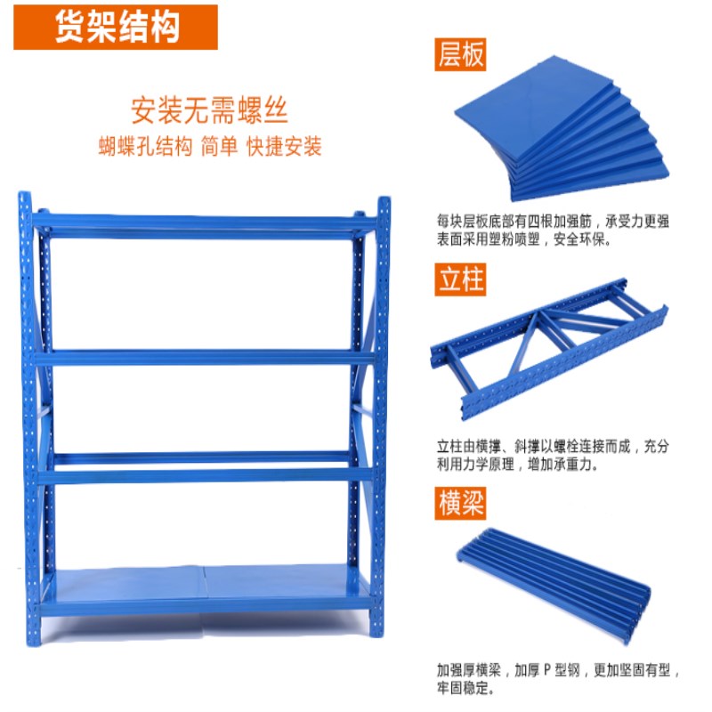 Shenzhen Medium Warehousing Shelves Warehouse Heavy Shelving Storeroom Clothing Home Show Shelf Iron Shelf Manufacturer Direct Sales
