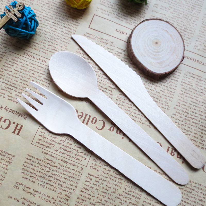 Disposable Japanese long handle small wooden spoon Wooden knife Dinner fork spoon Dessert cake fruit spoon Degradable wooden spoon fork