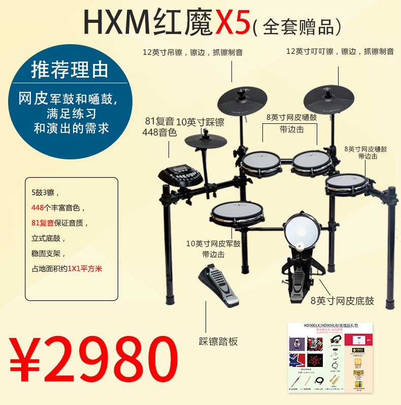 HXM Red Devil electronic drum 2000 1080 450 008L 006LX electronic drum Electric drum set Beginner jazz drum