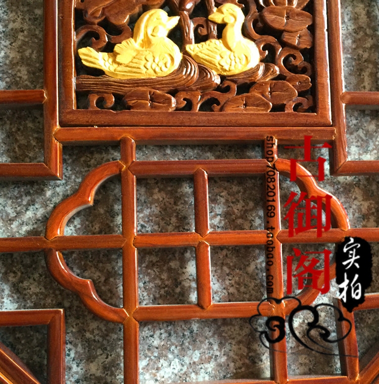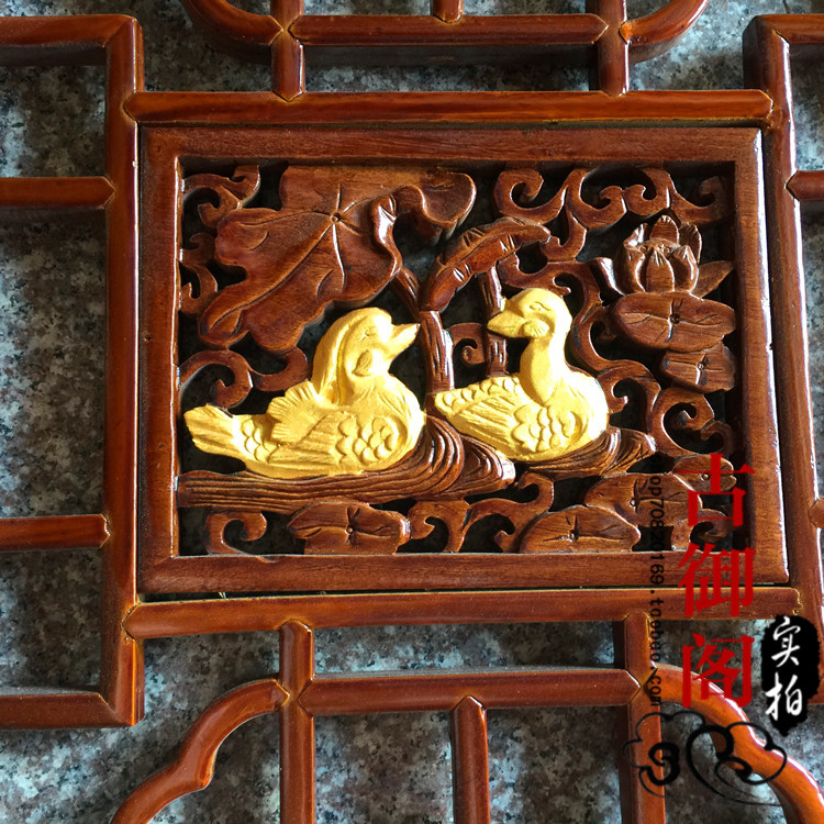 Dongyang wood carving octagonal mandarin duck pendant Solid wood elm flower lattice window partition entrance TV background wall 60cm