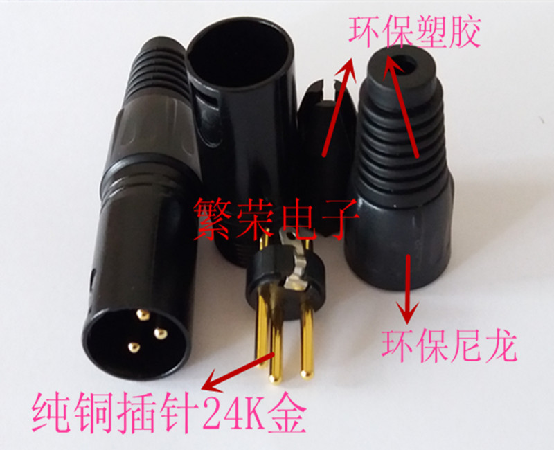Black gold mike inserts Carolon Cannon public head card tap copper core 24K gold XLR Cannon plug in J3P