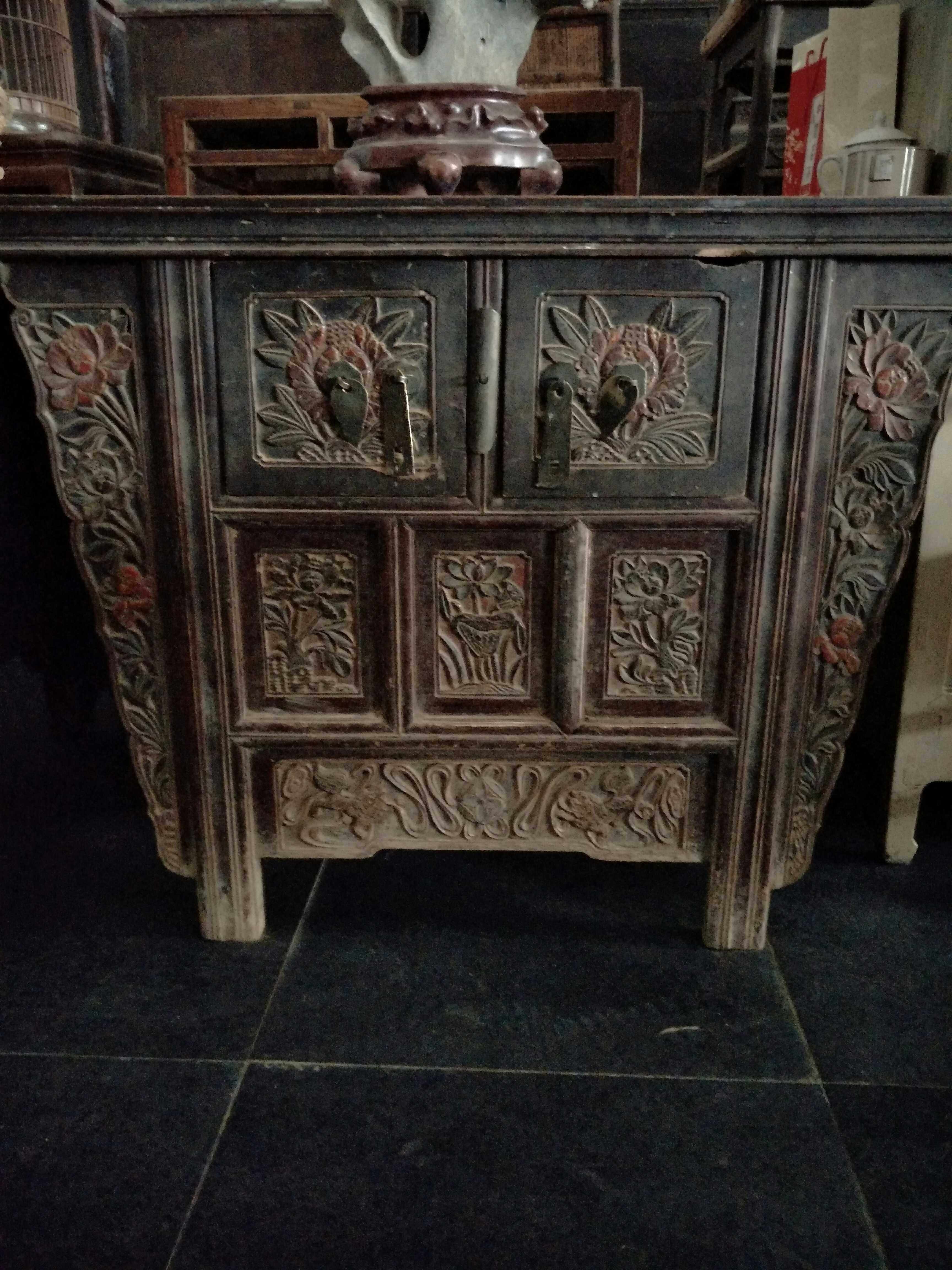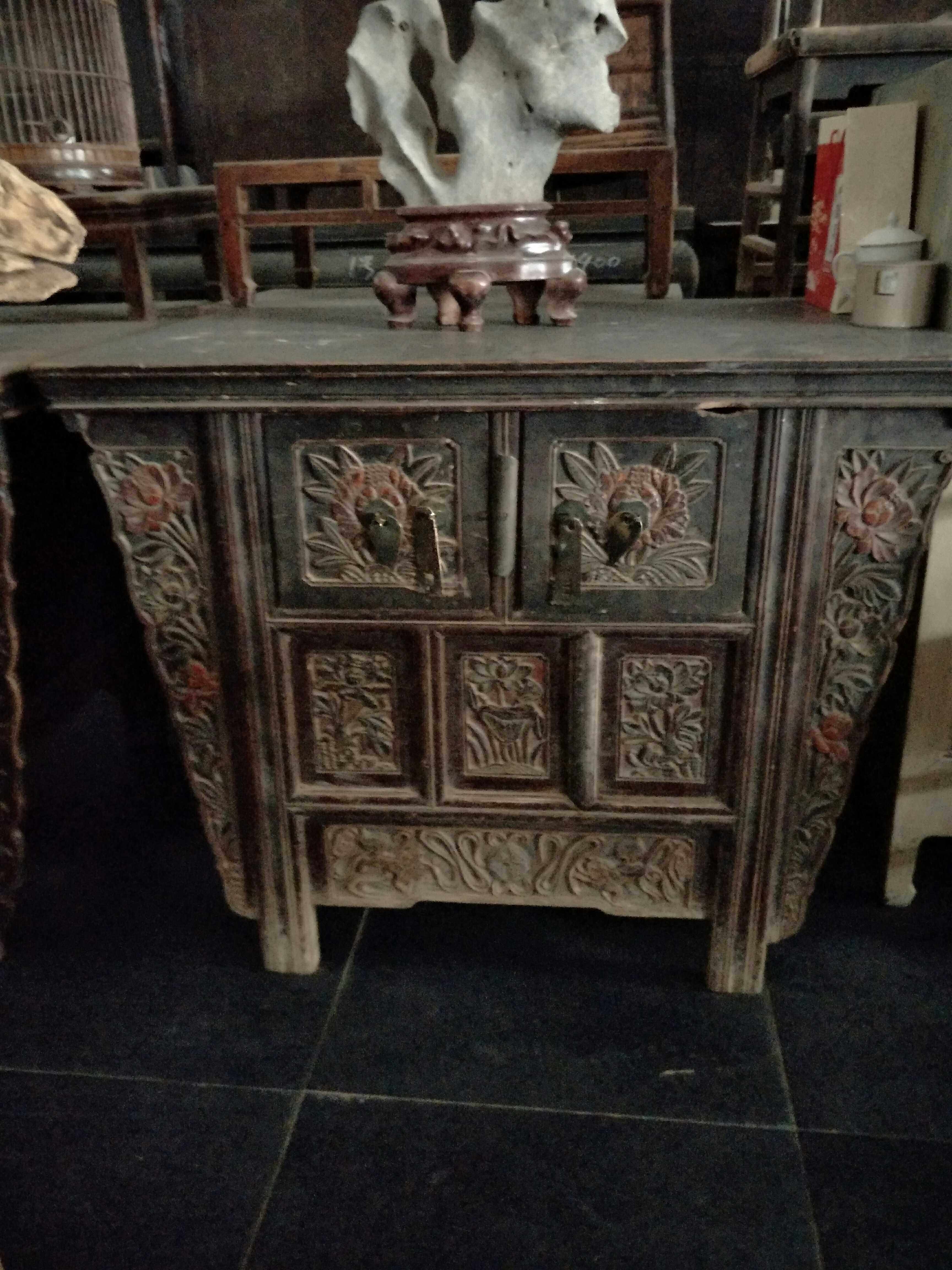 Special price Chinese style comeback ancient elm wood washing machine door hall Kitchen Carved Flowers Shanxi Stifling Cabinet Storage Partition Fish Tank Hyun Guan Guan Cabinet