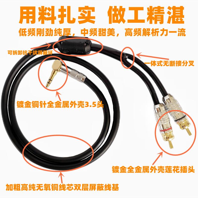 Fever grade 3 5 turn double RCA lotus audio line pure copper one point two red and white line AUX flat speaker