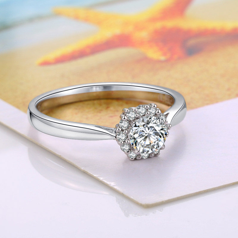 Levis white 18K gold snowflake shape group inlaid show diamond marriage proposal diamond ring custom 30 points 50 points diamond ring
