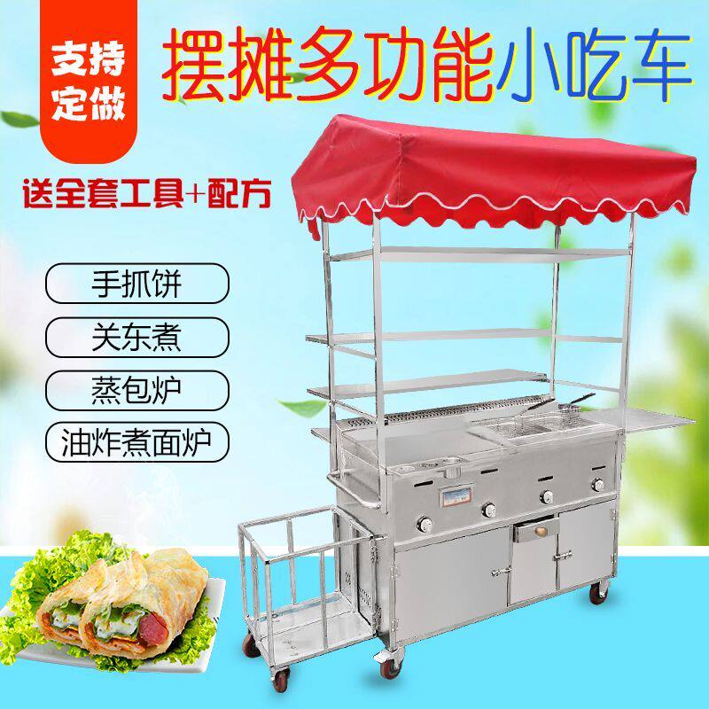 Commercial mobile multi-function dining car Gas mobile snack car Grill stove Fried Teppanyaki hand push stall barbecue car