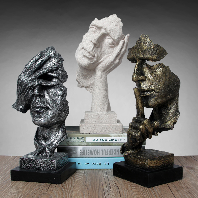 Eurostyle Modern Abstract Figure Statue Living Room Art Decoration Furnishing Silence Is Gold Not Listening to Resin Pendulum