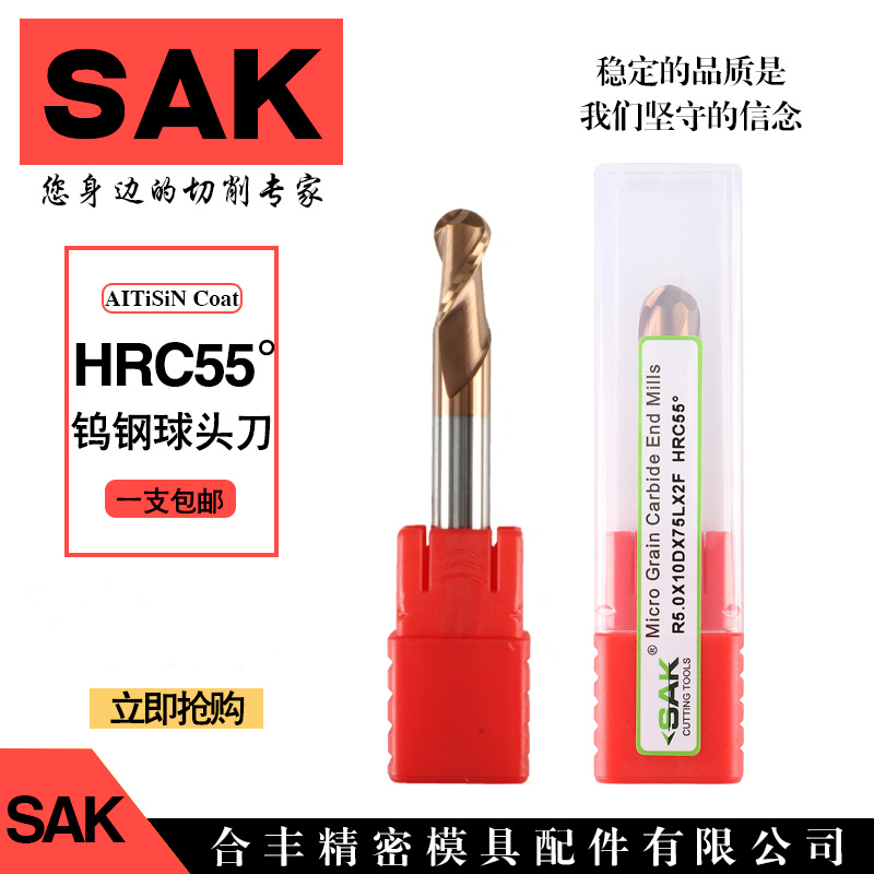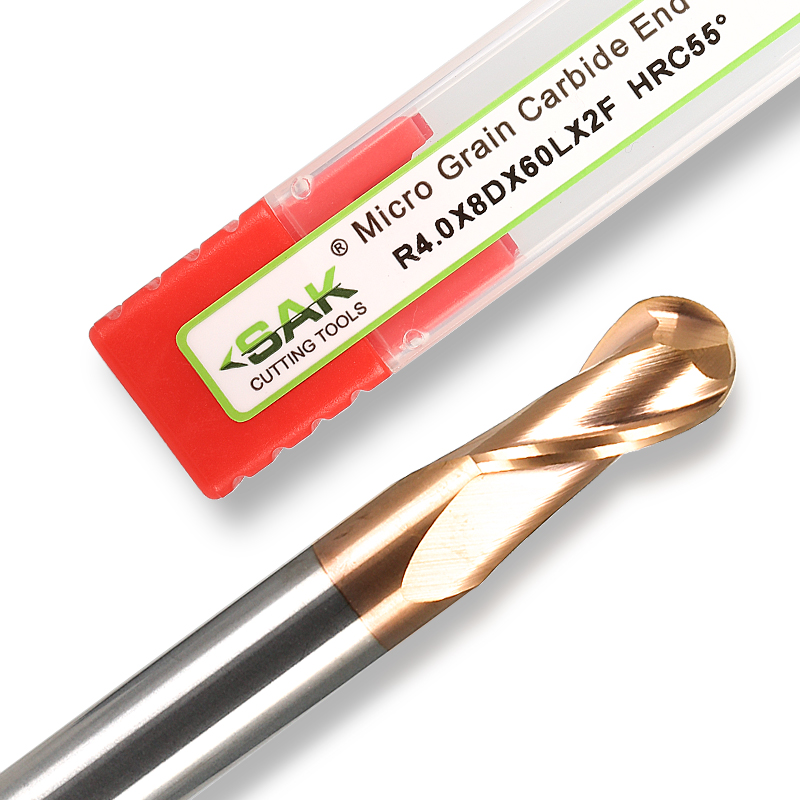 SAK tungsten steel ball head milling cutter HRC55 degree milling cutter CNC 1-20mm tungsten steel ball cutter Cemented carbide extended coating