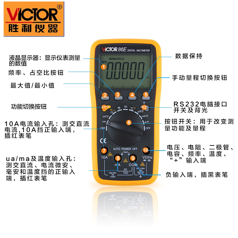 Victory VC86E digital multimeter 4 and a half high precision multimeter frequency temperature capacitor USB interface