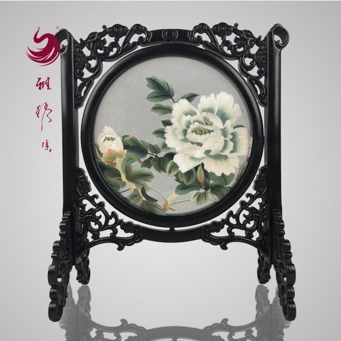 Elegant Embroidery Collection Xiang Embroidery Overseas Gift Peony Rich Red Sandalwood Handmade Embroidery Organs Double-sided Embroidery Hunan Specialty